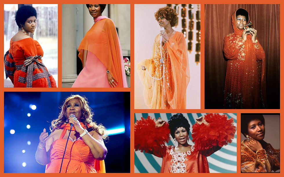 As I was scanning the internet for photos of her unstoppable style, I couldn't help notice that she shared my love of orange. The other thing that became increasingly clear was that Aretha Franklin dressed to please one person: herself.